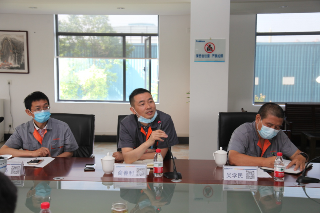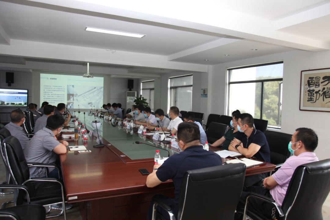 ▲公司副董事長、總經(jīng)理商春利(中)匯報(bào)項(xiàng)目建設(shè)情況